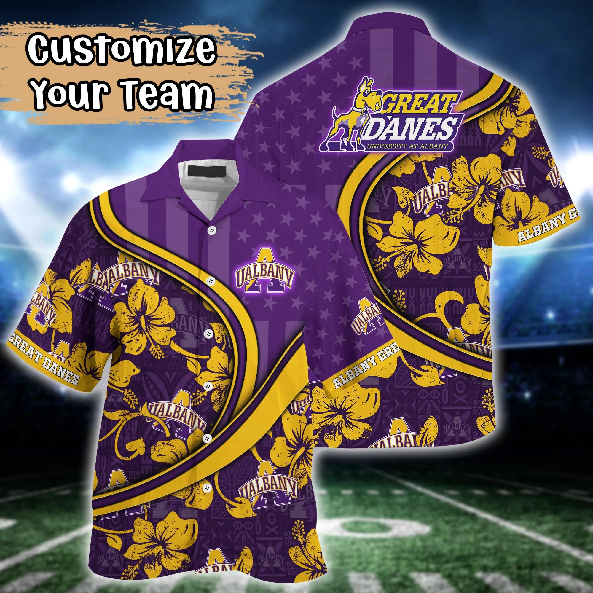 Albany Great Danes Ncaa Us Flag Hawaiian Shirt Custom Summer Aloha Shirt