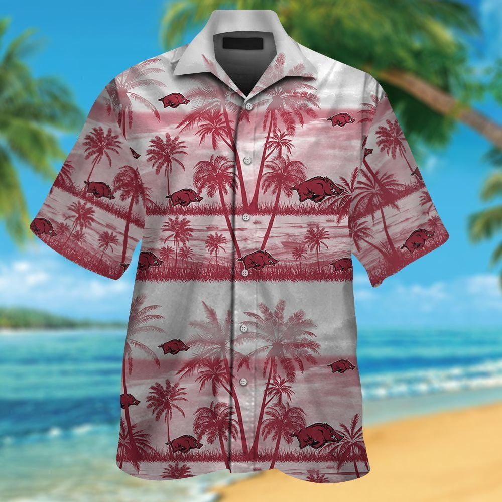 Arkansas Razorbacks Button Up Shirt Hawaiian Short Sleeve Tropical Design