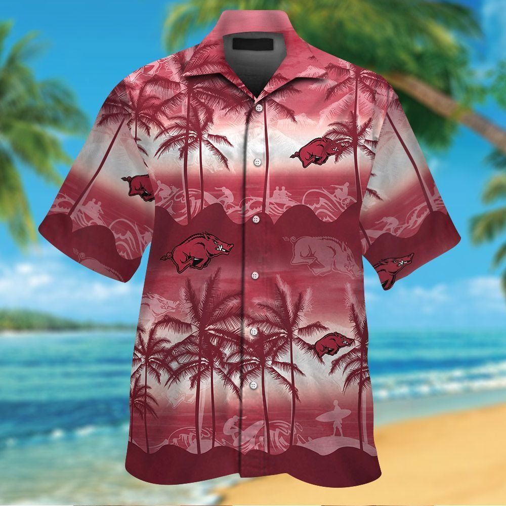 Arkansas Razorbacks Hawaiian Design Short Sleeve Button Up Tropical Shirt