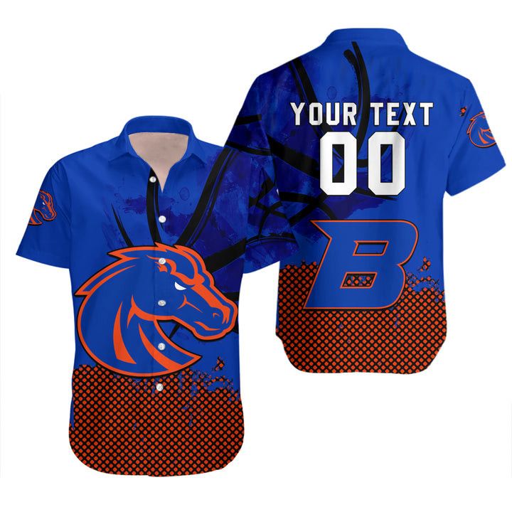Boise State Broncos Custom Text Number Blue Orange Grunge Pattern Trendy Hawaiian Shirt Aloha Shirt