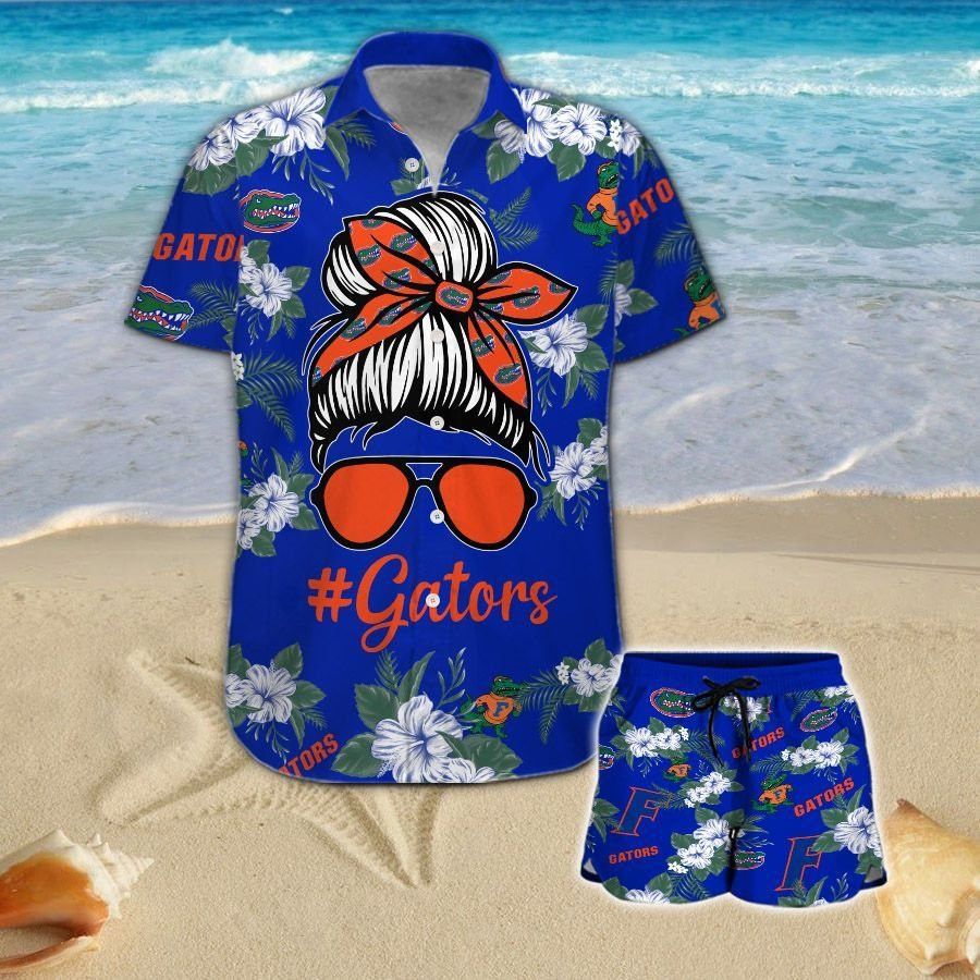 Florida Gators Girl Messy Bun Short Sleeve Button Up Tropical Hawaiian Shirt