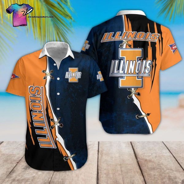 Illinois Fighting Illini Blue Orange Trendy Hawaiian Shirt Aloha Shirt