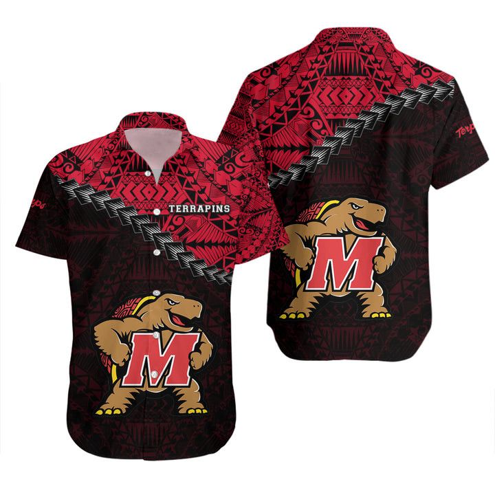 Maryland Terrapins Red Black Polynesian Trendy Hawaiian Shirt V2 Aloha Shirt