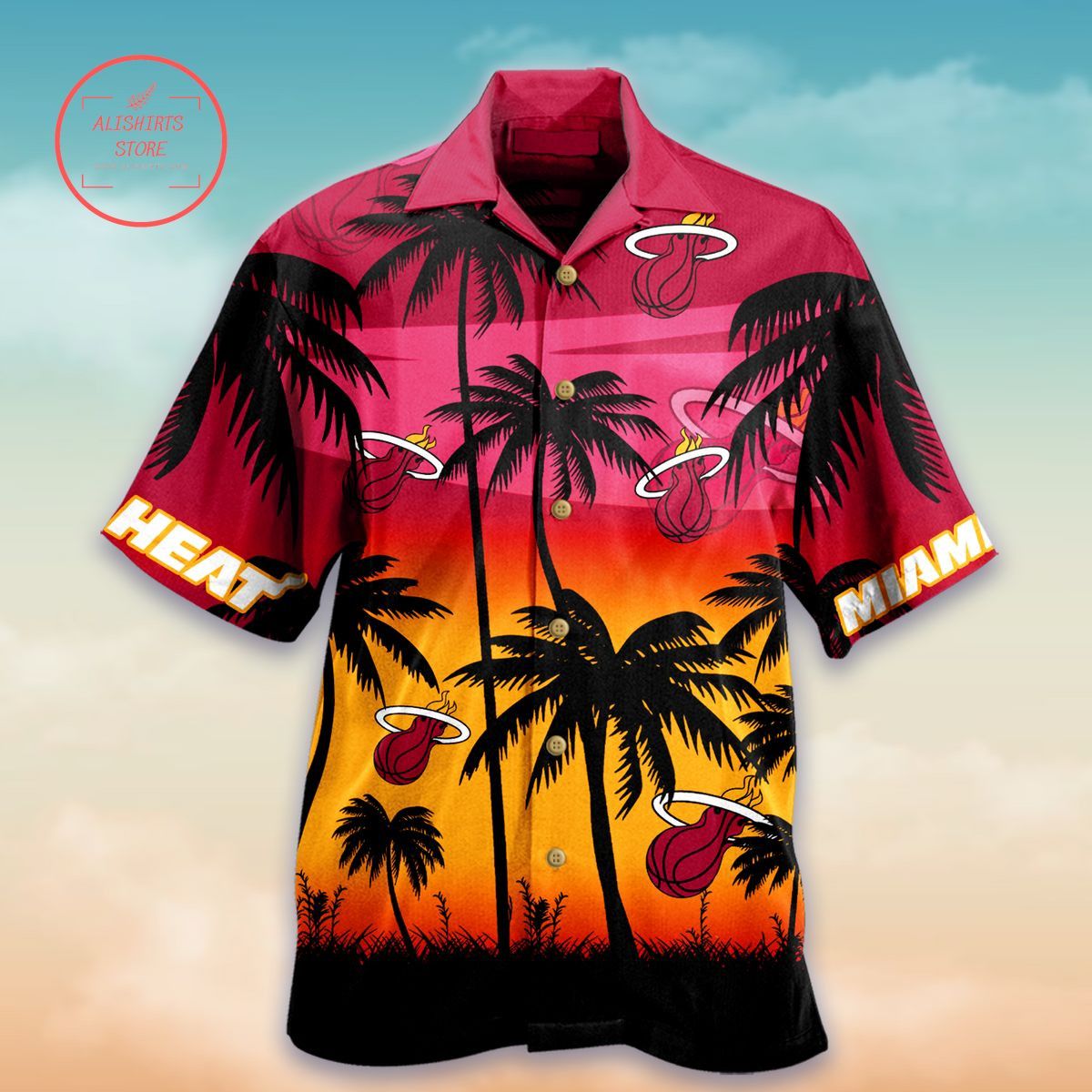 Miami Heat Red Yellow Palm Trees Hawaiian Shirt