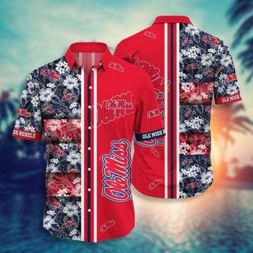 Ole Miss Rebels Grey Flowers Red Trendy Hawaiian Shirt Aloha Shirt