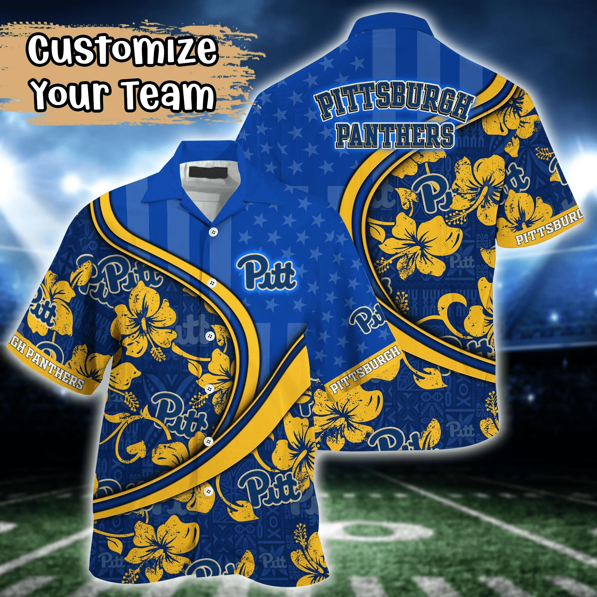 Pittsburgh Panthers Ncaa Us Flag Hawaiian Shirt Custom Summer Aloha Shirt