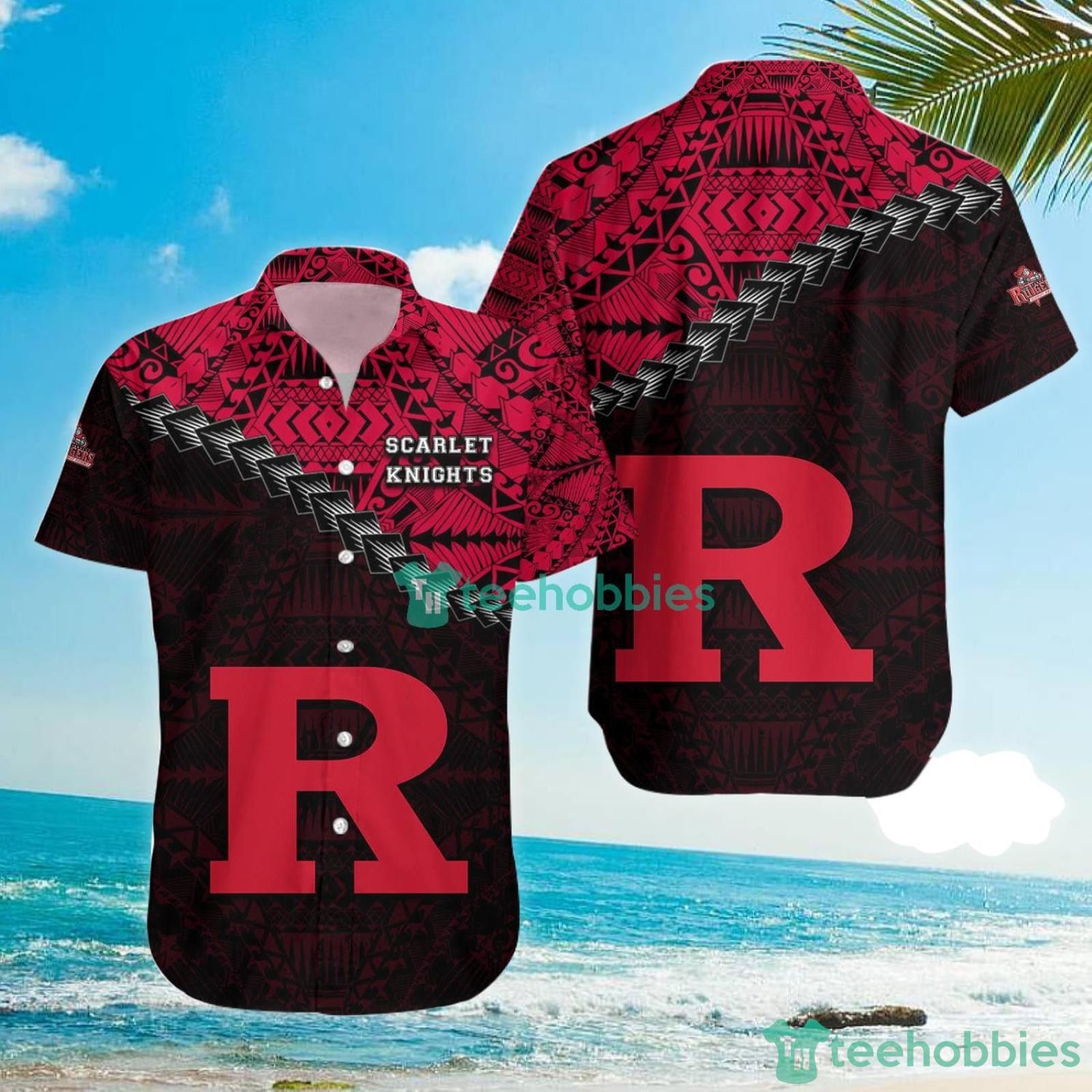 Rutgers Scarlet Knights Grunge Polynesian Tattoo Hawaiian Shirt