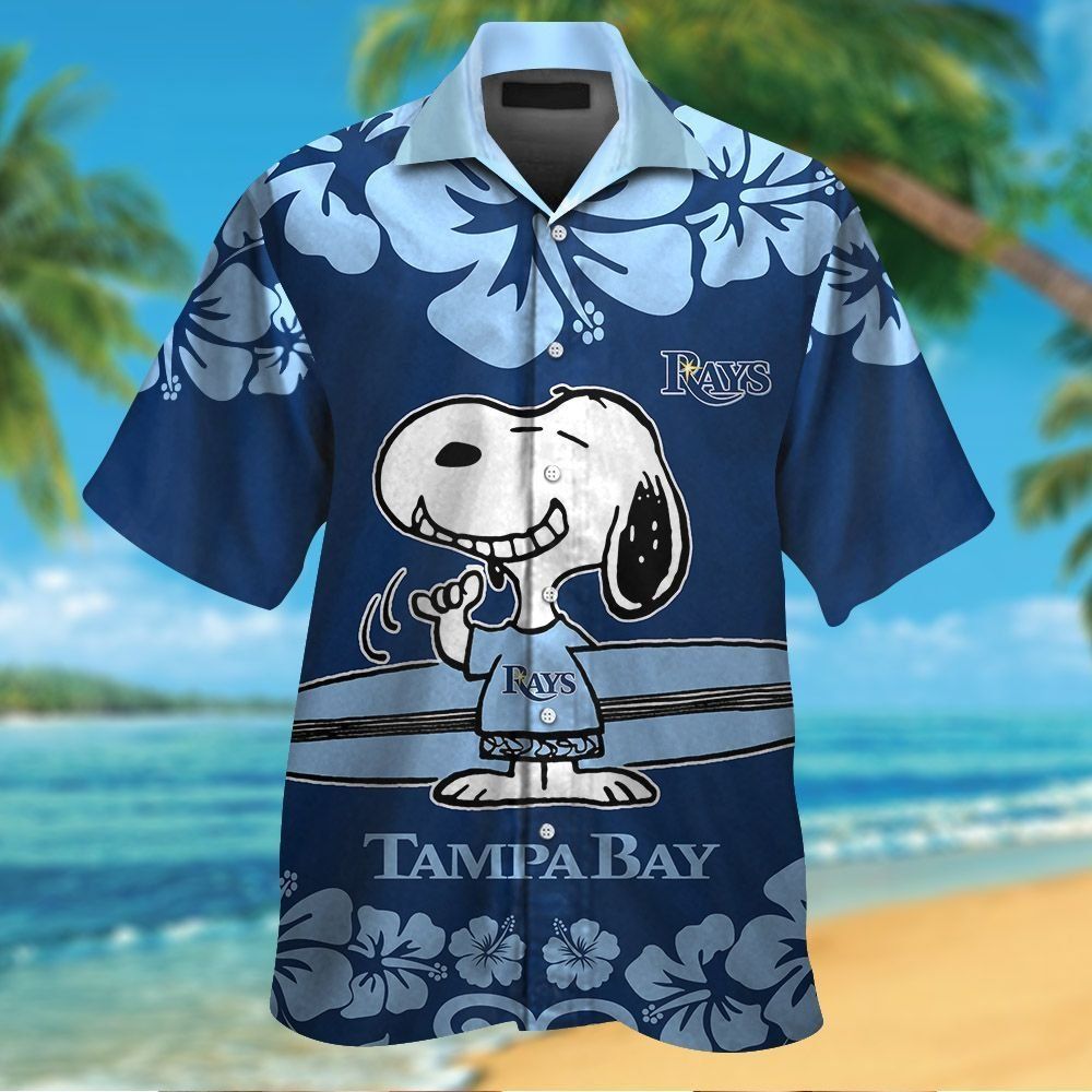 Tampa Bay Rays Snoopy Short Sleeve Button Up Tropical Hawaiian Shirt