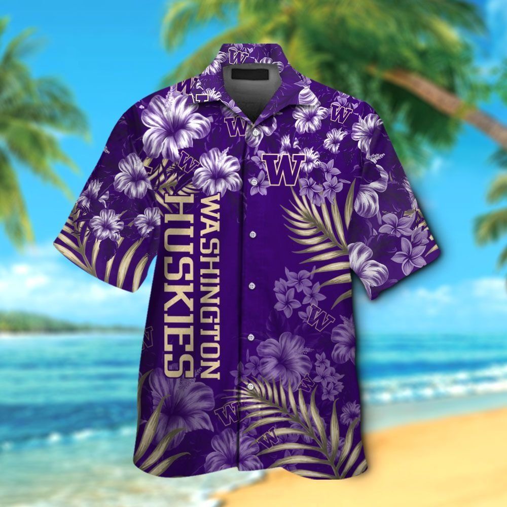 Washington Huskies Short Sleeve Button Up Tropical Hawaiian Shirt